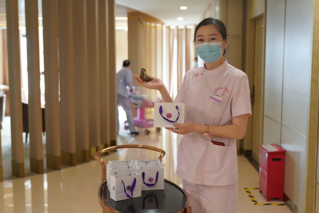 “虽然我们不能回家过节,但是在和平护士们和我们一起过节,心里非常感动,真的很谢谢你们送来的粽子!”一位宝妈接过护士送上的粽子时,激动地连声道谢。